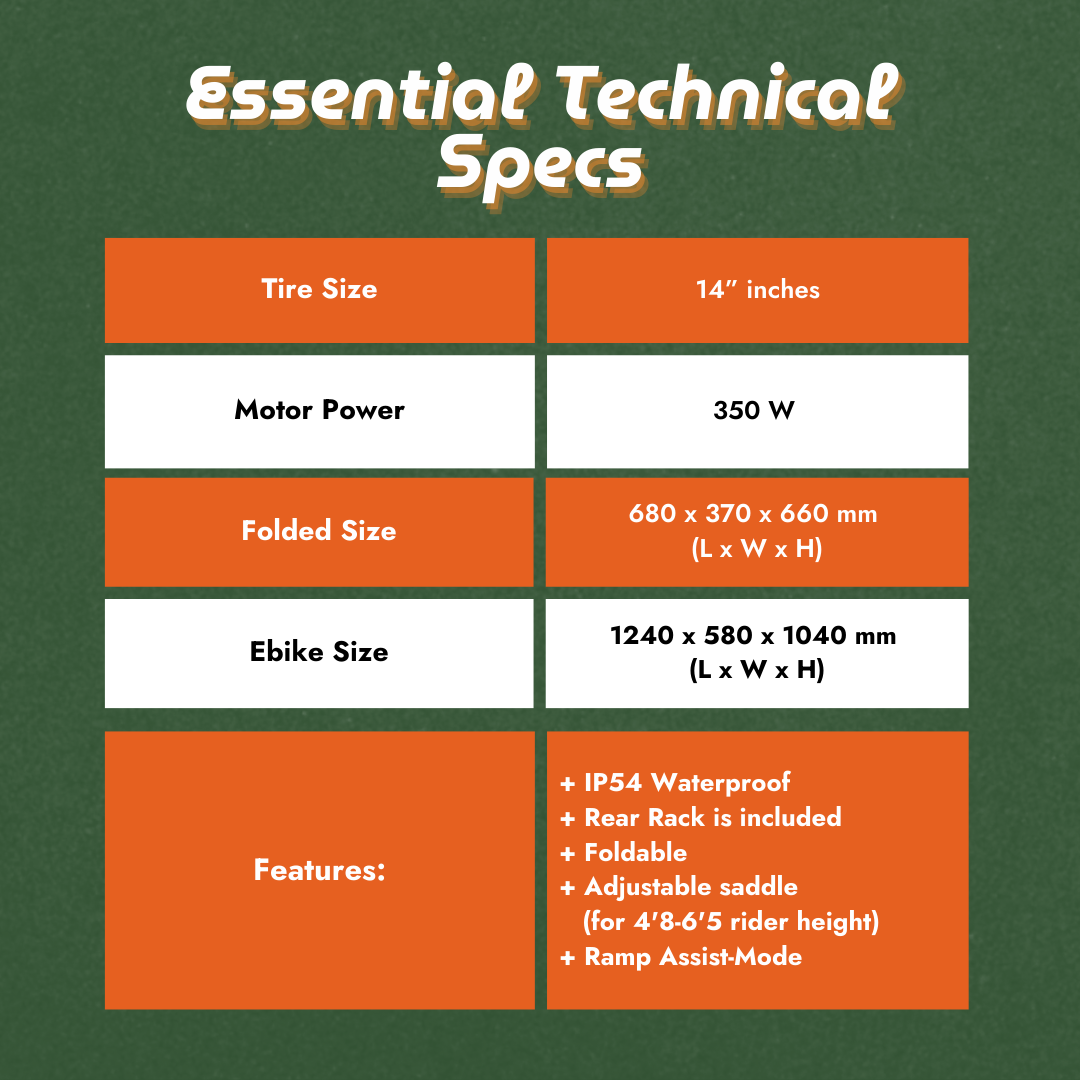 | Frame | 14-inch Aluminum Alloy Folding Frame |